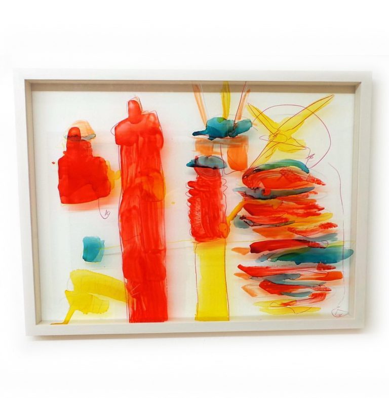 Öl and Glasfarben auf Glas, gerahmt 55 cm x 68 cm 2014